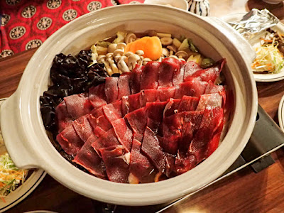 | 晩ごはんはなんと鹿鍋。明日に向けて英気を養いました。 |